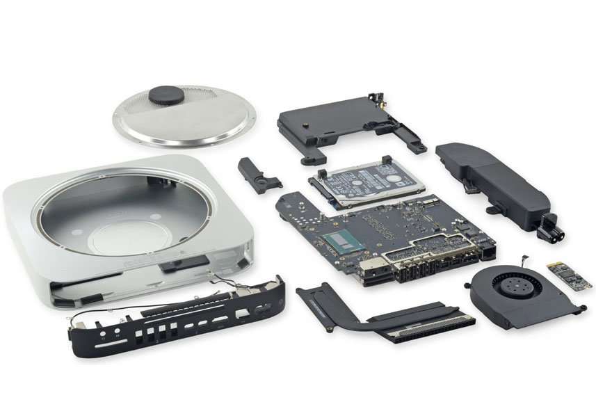 תיקון כל בעיית חומרה במק מיני דורש פירוק מלא, מה שעלול להוביל לבעיות חמורות עוד יותר עבור משתמשים ללא ניסעיון וידע מיוחדים. עיצוב ה- Mac Mini רגיש במיוחד, כאשר הכבלים, לוח האם ותושבות הכונן הקשיח דורשים כלים מיוחדים להרכבה ופירוק.