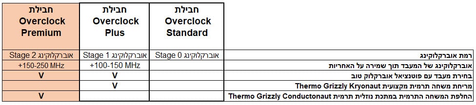אנו מציעים שתי רמות (stage) של אוברקלוק מחשב מקצועי, מה שמבטיח את היציבות והאמינות של המערכת כולה.