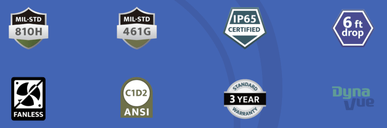 Optional 1000 nits DynaVue® sunlight readable display with capacitive multi-touch screen or with digitizer