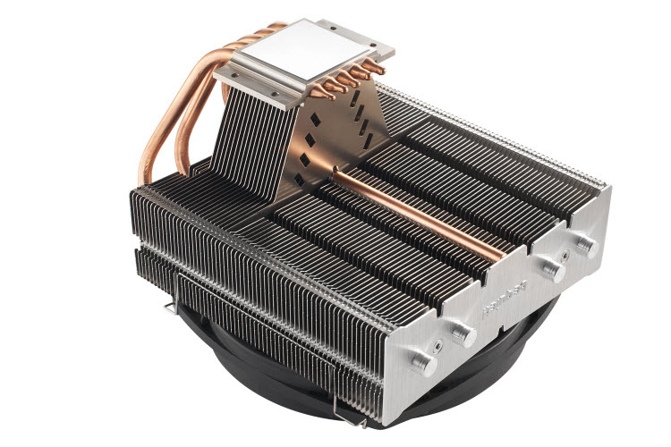 Material: Copper (base and heat-pipes), aluminium (cooling fins), CNC machined